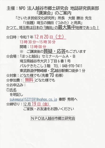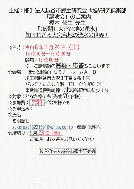Copyright(c) NPO法人越谷市郷土研究会 All Rights Reserved.